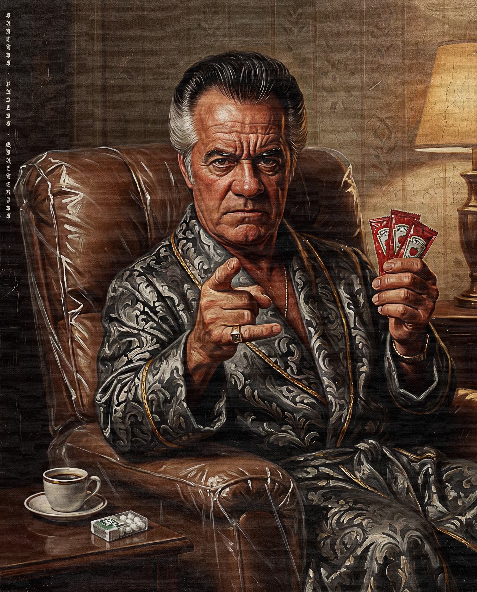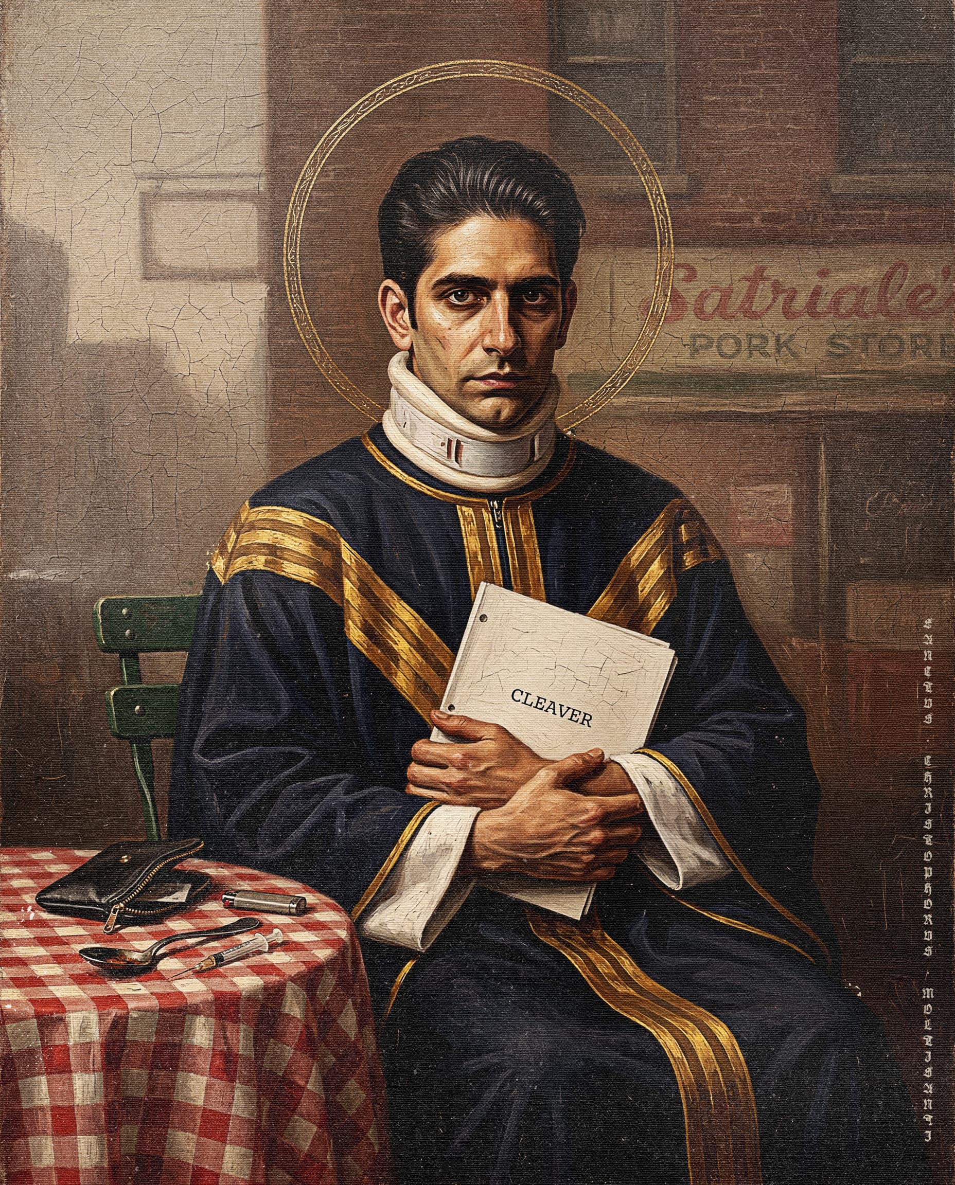 An ongoing fan art series depicting the characters of HBO's The Sopranos as canonized Renaissance saints — gold halos, Latin inscriptions, devotional iconography — executed with complete sincerity and no irony whatsoever.